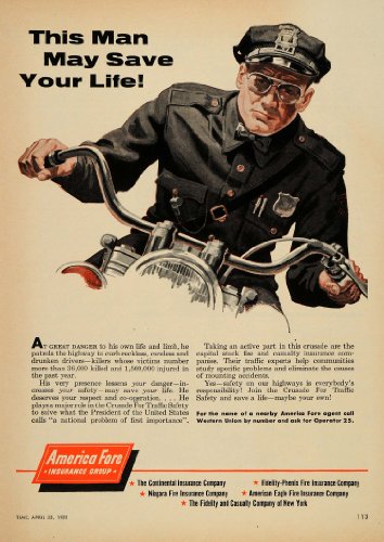 0 Response to "1955 Ad America Fore Insurance Group Patrol Motorcycle - Original Print Ad"