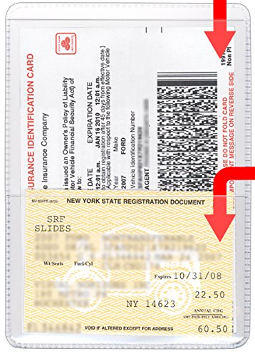 Sick of trying to find ways to protect and preserve your important vehicle paperwork? Tired of groping through your glove compartment for your registration and ID? StoreSMART's Insurance and ID Card Holders are the perfect solution! Each 4" x 5 5/8" envelope is crafted of sturdy polypropylene archival plastic, and features two convenient pockets. The largest will fit most insurance forms, including the NYS FS-20, while the smaller one will hold a business or identification card (and both have crystal clear fronts, which makes it easy to identify the contents). Our Insurance and ID Card Holders are great for organizing insurance policies, registration information, AAA forms, and more. Stop digging around for the paperwork you need--make your information neat, compact, and easy to find. Product Features: Crafted of archival quality polypropylene plastic that won't lift ink from your documents. Front is crystal clear; back is clear. Overall size: 4" x 5 5/8". Capacity of large pocket: 3 3/4" x 5 1/4". Capacity of small pocket: 3 3/4" x 2 3/8". Open on the short side. Flexible and reusable. Manufactured in the USA. Suggestions for Use: Motorists: Use them to store your vehicle's registration information, vehicle insurance policy information, AAA forms, and more. Make your paperwork easy to grab and hand off in the event of a police stop or an accident. Businesses: Our Brochure and Policy Holders are an attractive way to present clients with service agreements, warranties, or other paperwork. When clients need to contact you, ensure that your business card is neatly bundled alongside their information. Everyone: Use them to present gift cards, protect warranties, store your student ID or library card, carry photos, or keep your lunch money safe. There are hundreds of uses!Crafted of archival quality polypropylene plastic that won't lift ink from your documents.