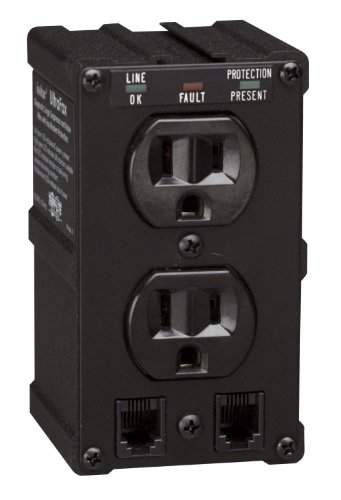 ULTRAFAX features 2 outlets arranged with standard wall socket spacing in a cordless direct plug-in format. Mounting tabs allow permanent connection via duplex switch plate screw. Surge suppression rated at 1410 joules/48,000 amps offers high-grade protection. A pair of RJ-11 jacks provide single phone line surge suppression for modems, fax machines and cordless phones. Diagnostic LEDs confirm power availability, line fault and protection status. $10,000 Ultimate Lifetime Insurance.Single phone line surge suppression protects modems, fax machines and cordless phones (2 wire, single line, RJ11 jacks) 2 outlets with standard duplex wall outlet spacing